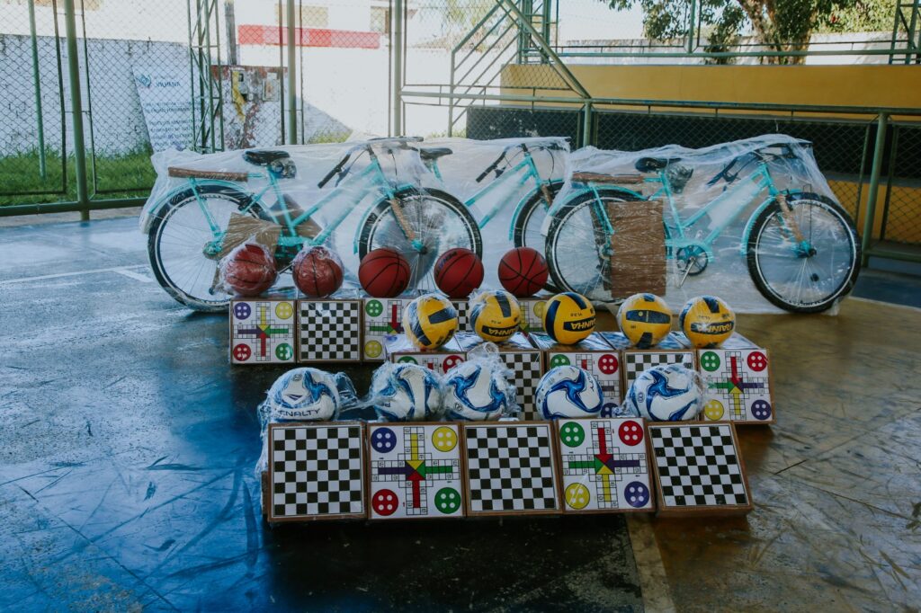 Ao todo, foram entregues 200 jogos didáticos, 35 bolas de vôlei, futebol e basquete, além de três bicicletas, como forma de incentivo à participação e ao protagonismo estudantil.